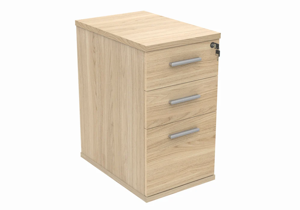 The top drawer is lockable for added security, while the strong wooden construction ensures long-term durability. Available in 600d or 800d versions, this pedestal is a versatile choice for any office setup.